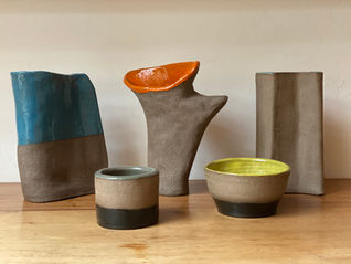 A series of hand-built bowls and vases that celebrate the raw beauty of clay. Each piece highlights the natural tones and textures of its clay body, accented with bold, expressive glazes that elevate simple forms into functional art. These vessels strike a balance between everyday utility and sculptural presence.